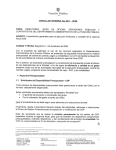 | 2026 | Circular interna N. 003 de 2026 | Interna | Lineamientos generales para la ejecución financiera y contable de la vigencia fiscal 2026. |